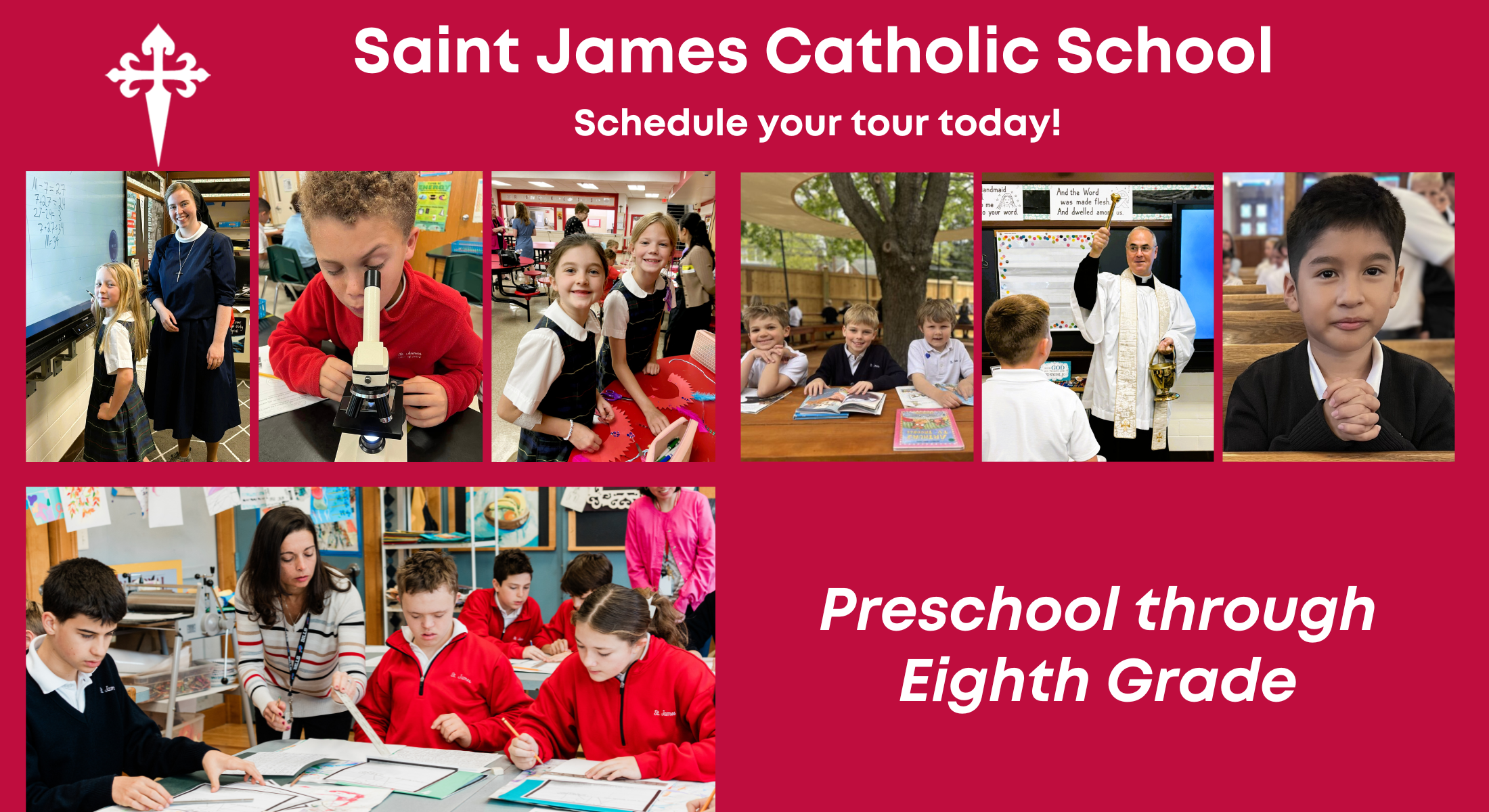 Prospective families are invited to schedule a tour with our Admissions Director, Teresa Ivanauskas at tivanauskas@saintjamesschool.org or 703-533-1182 x102.